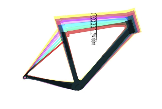 為了維持從XS到XXL不同尺寸車架的剛性與舒適性、操控品質和舒適性。在設計階段,我們為每種尺寸的自行車創建了不同的主管部分,以增加車架的抗扭剛度和穩定性。
